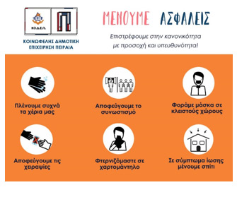 ο Πειραιάς όπως και όλη η Ελλάδα, έδωσε το καλό παράδειγμα για την σωστή διαχείριση και αντιμετώπιση της πανδημίας. Έργο όχι μόνο της κυβέρνησης αλλά και των ίδιων των πολιτών Όπου με την υπομονή τους και ακολουθώντας πιστά τις οδηγίες των ειδικών καταφέραμε να βγούμε νικητές από αυτή τη μάχη. Ύστερα από περίπου δύο μήνες πρωτόγνωρης υγειονομικής απειλής επανερχόμαστε σταδιακά στους πρότερους ρυθμούς της ζωής προσαρμοσμένους στη νέα κανονικότητα. Η ΚΟΔΕΠ στάθηκε στο πλευρό κάθε δημότη και κάθε κατοίκου του Πειραιά σε όλη τη διάρκεια της