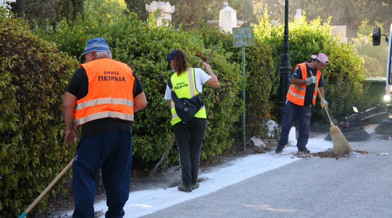 Συγκεκριμένα, συνεργεία από την υπηρεσία καθαριότητας πραγματοποίησαν, αυτές τις ημέρες, εργασίες καθαρισμού σε όλο το παραλιακό μέτωπο της Πειραϊκής, σε δύο πάρκα επί της Ακτής Θεμιστοκλέους, καθώς και στο Δημοτικό Κοιμητήριο «Η Ανάσταση».
