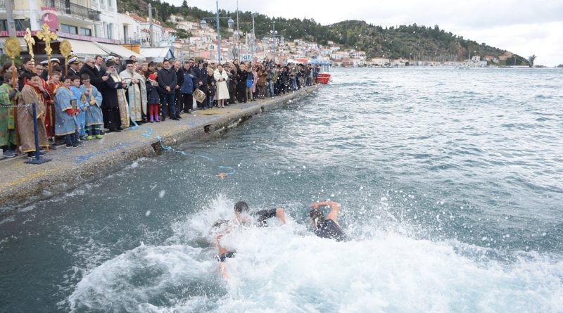 ΠερισσότεραΜε πολύ κρύο και έντονη θαλασσοταραχή πραγματοποιήθηκε τη Δευτέρα 6.1.2020 ο αγιασμός των υδάτων στο λιμάνι του Πόρου. Λόγω των