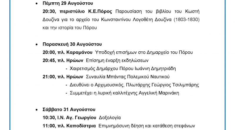 Οι εκδηλώσεις των Συνοριακών της Νεότερης Ελλάδας – Πόρος 2019