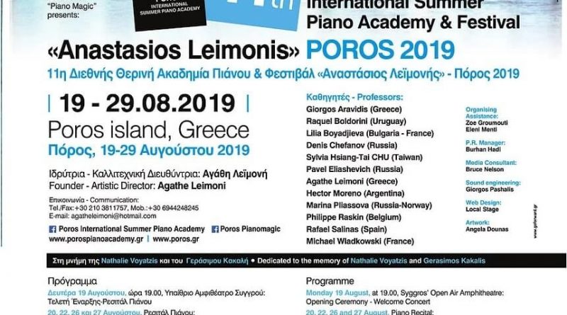 11η Διεθνής Θερινή Ακαδημία και Φεστιβάλ Πιάνου «Αναστάσιος Λεϊμονής» – 2019