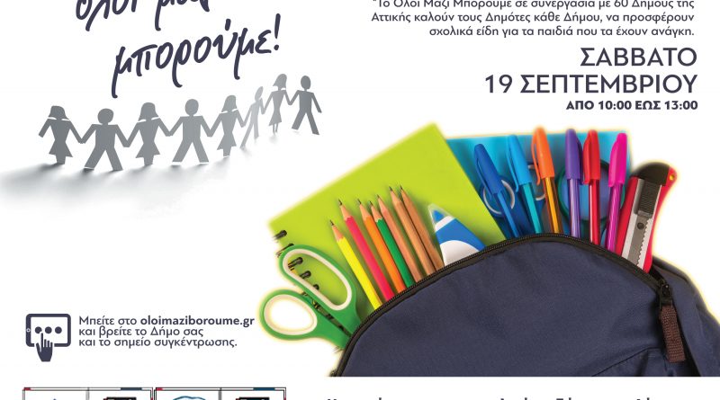 ΠερισσότεραΣχολικά είδη για μαθητές που έχουν ανάγκη θα συγκεντρώσει ο Δήμος Πειραιά, συμμετέχοντας στην κοινωνική δράση του «Όλοι Μαζί Μπορούμε»