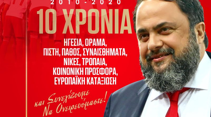 Ευχές του Ολυμπιακού στον ηγέτη του Θρύλου μας Βαγγέλη Μαρινάκη