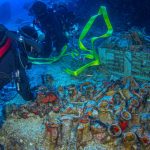 Ευρήματα όπως οστά, τα οποία πρέπει να αναλυθούν, χάλκινα καρφιά από το πλοίο, καθώς και...