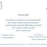 Την Κυριακή 21 Απριλίου 2024 και ώρα 12.00 θα πραγματοποιηθεί η τελετή απονομής των βραβείων του 11ου Πανελλήνιου...